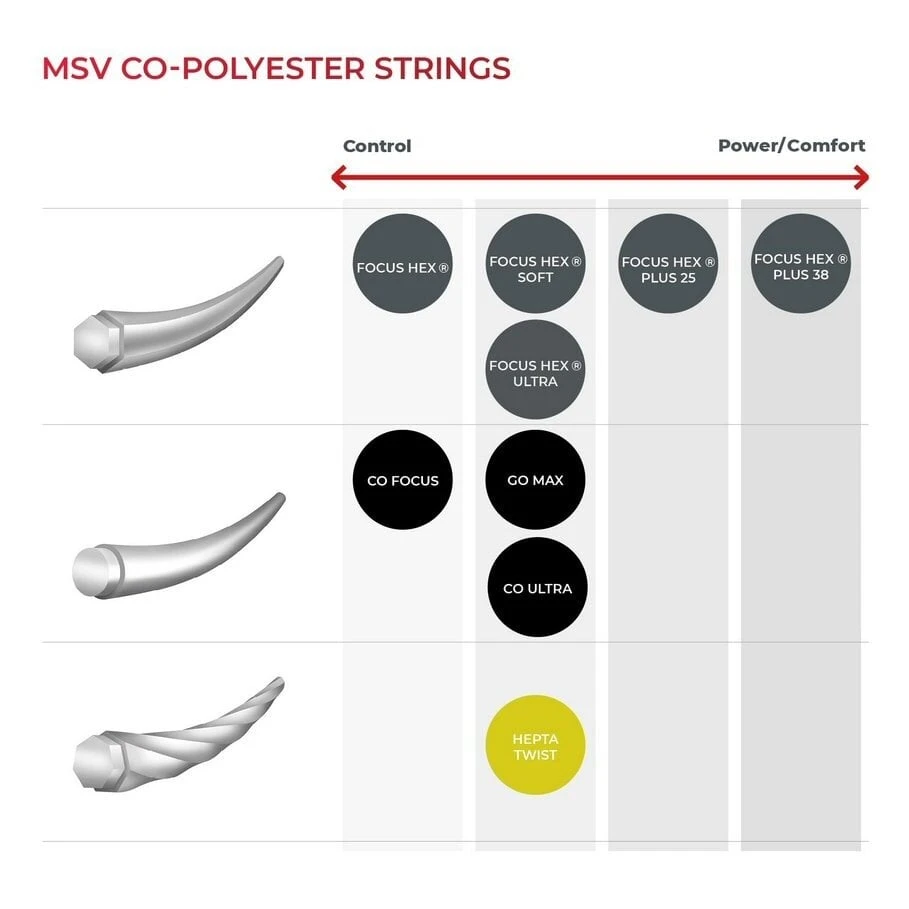 - 30 Tester der European Racquet Stringers Association haben die MSV FOCUS-HEX® 1,18mm 5 Wochen lang getestet