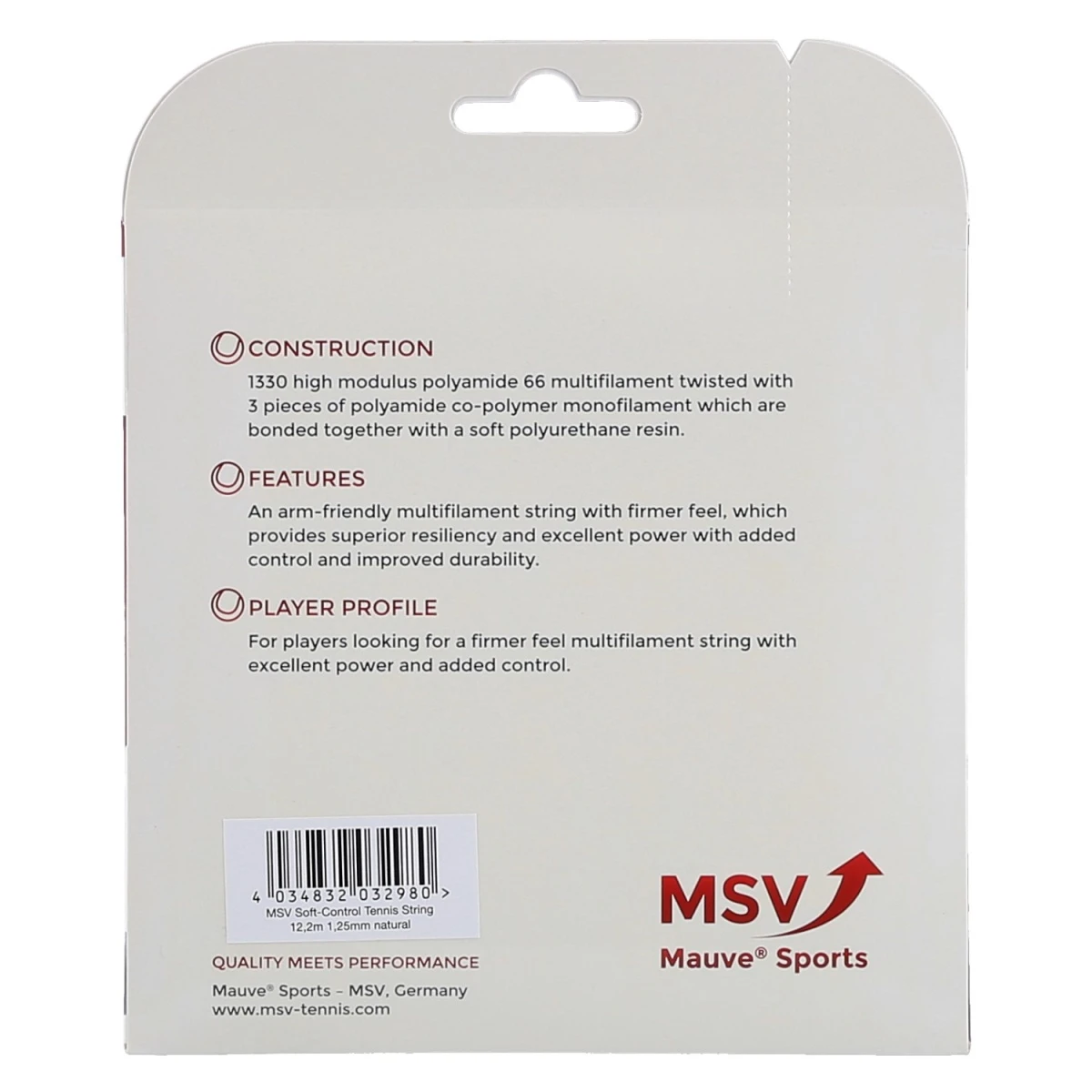 - die MSV Soft-Control ist aus 1330 Multifilamenten, die aus einem High Modulus Polyamid 66 (dem Hochwertigstem, das es gibt ) hergestellt wurden, gewickelt